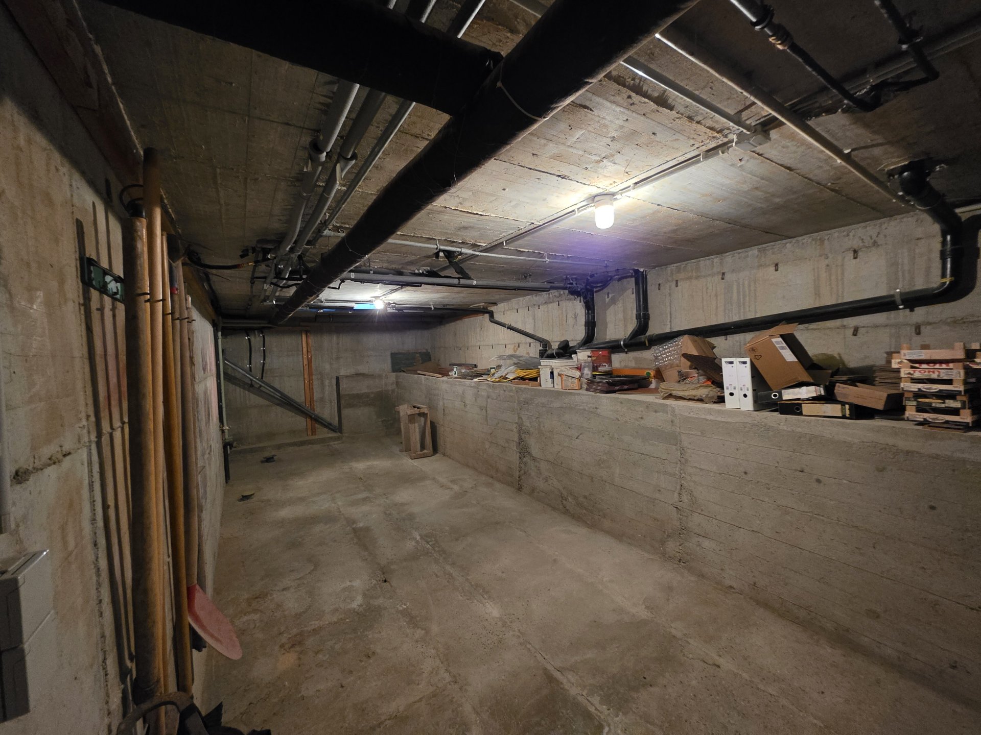 Im Keller befinden sich ein Wasch- und Trockenraum, ein großzügiger Hobbyraum mit ca. 20 m², mit direktem Zugang zum Garten und ein Werkraum. Ein Drittel der Kellerfläche ist bereits vorbereitet für einen zukünftigen Sauna- und Wellnessbereich (Rohbau). Ursprünglich war dieser Teil ein Kriechkeller, welcher nachträglich vom Eigentümer für den Wellnessbereich inkl. Anschlüssen (Wasser/Strom) ausgebaut wurde.